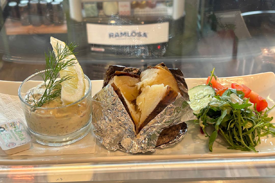 Bakad potatis ( alt. dagens bröd) & sallad.